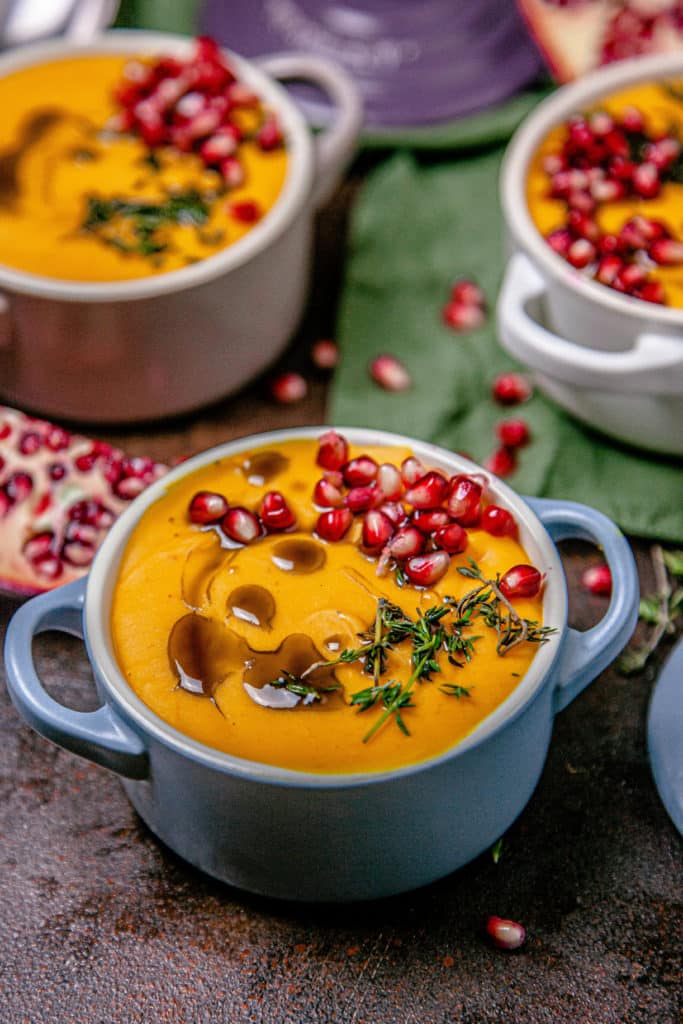 We love cream soups simple. And without cream! Coconut milk is the only creaming source we accept in creams soups. Make them simple and light, then we can eat a whole pot without having a bad feeling.