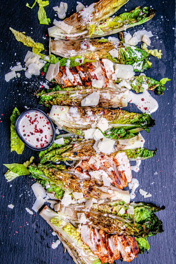 You are missing big time, if you don’t prepare this Grilled Chicken Caesar Salad. Juicy chicken and grilled chicory salad, which has a smoky, charred flavour. Topped with the easiest Caesar Dressing and a bunch of parmesan cheese!