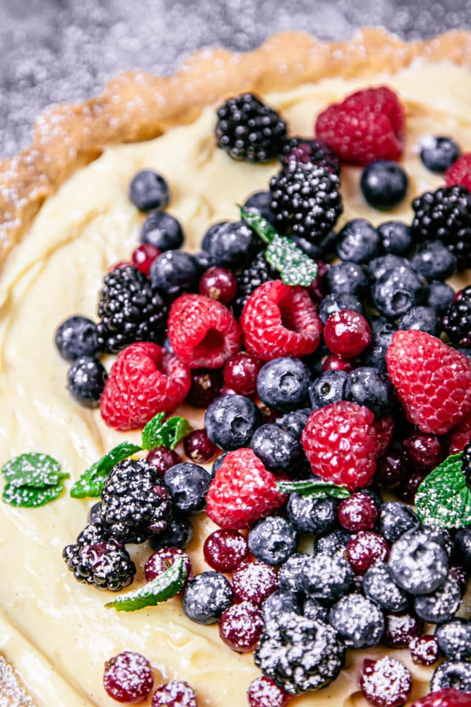 This almond shortcrust is the perfect complement to the creamy vanilla custard and fresh berries. Refreshing and sweet at the same time.